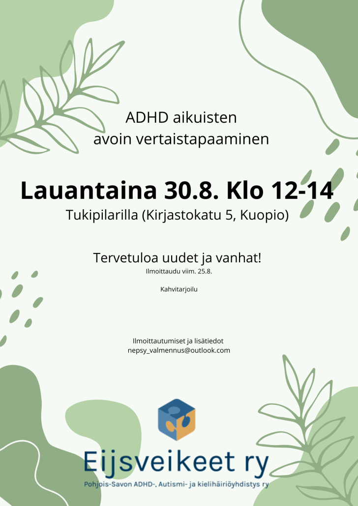 KUOPIO: ADHD-oireisten aikuisten vertaistukiryhmä