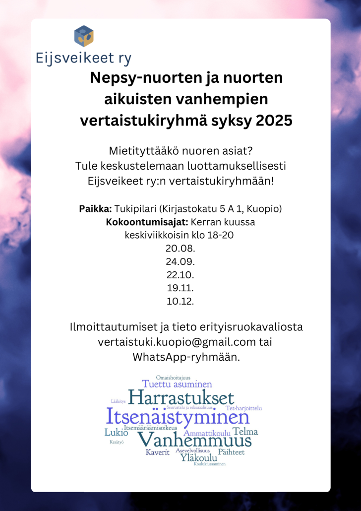 KUOPIO: Nepsy-nuorten ja nuorten aikuisten vanhempien vertaistukiryhmä